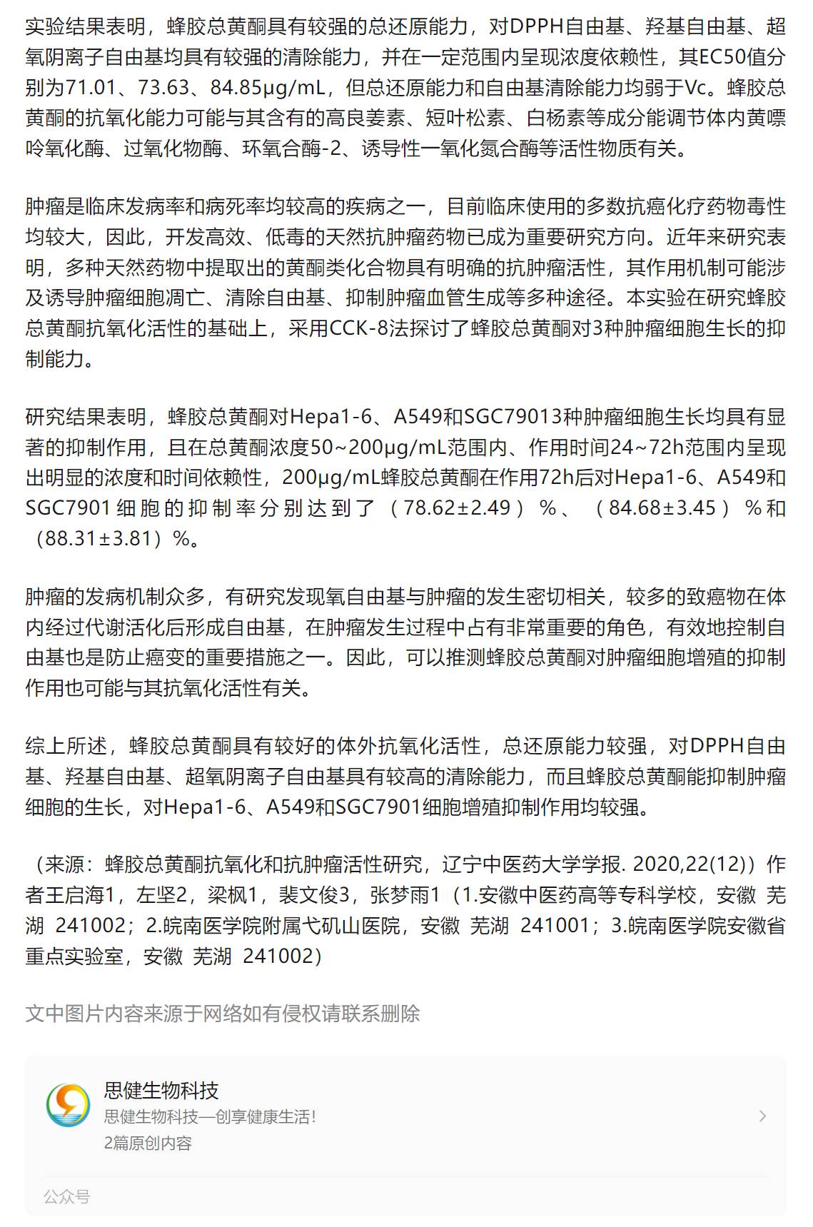 蜂膠總黃酮抗氧化和抗腫瘤活性研究!-遼寧中醫(yī)藥大學
