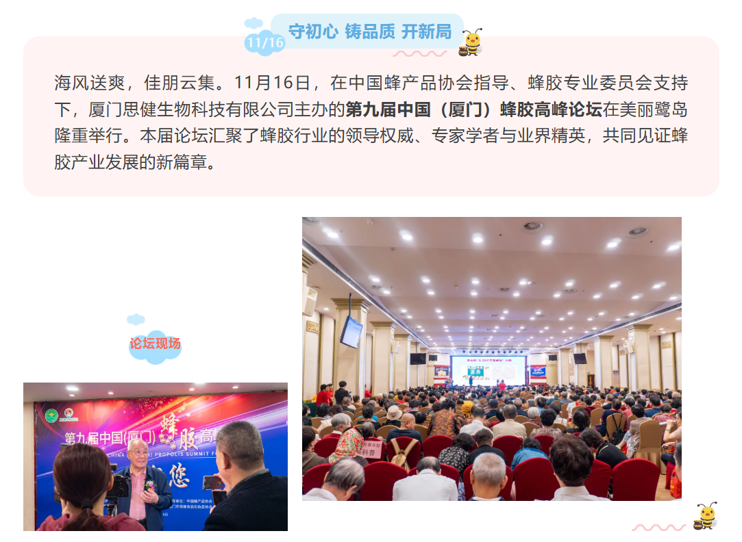 思健生物科技誠邀您共赴廈門出席第九屆中國(廈門)蜂膠高峰論壇:與蜂業(yè)權威面對面,洞見蜂膠國際新未來